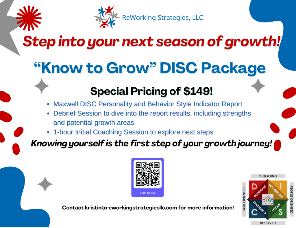 Use the QR code in the image, or CLICK HERE to purchase and Register for “Know to Grow” Individual DISC Package!